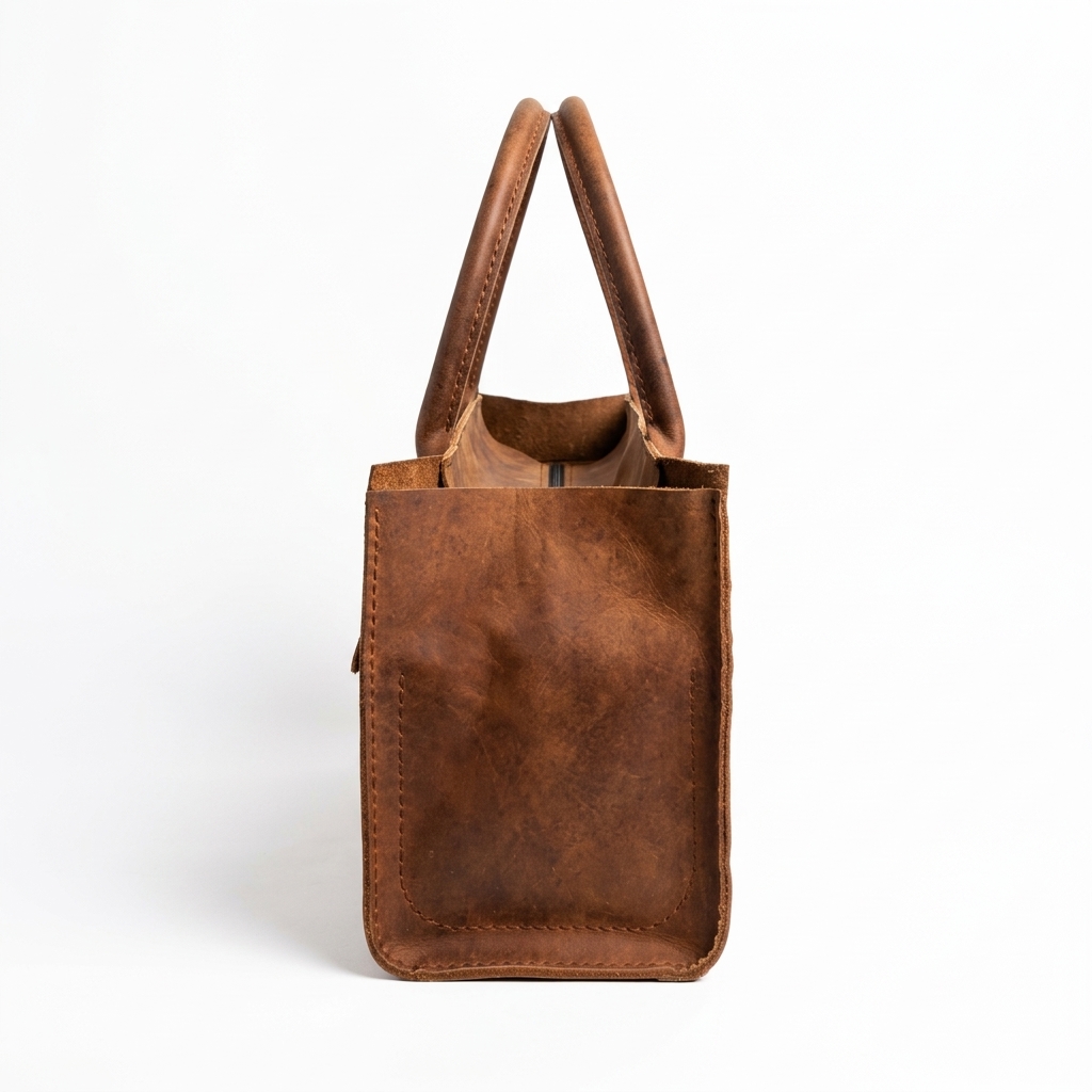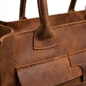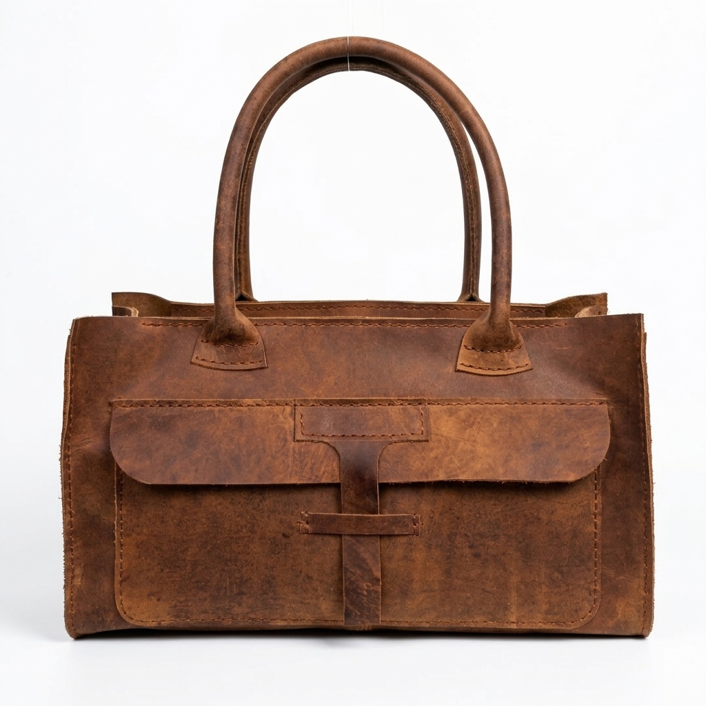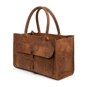 A high-quality natural cow leather handbag in a rich brown hue, embodying elegance, functionality, and longevity to the highest degree.